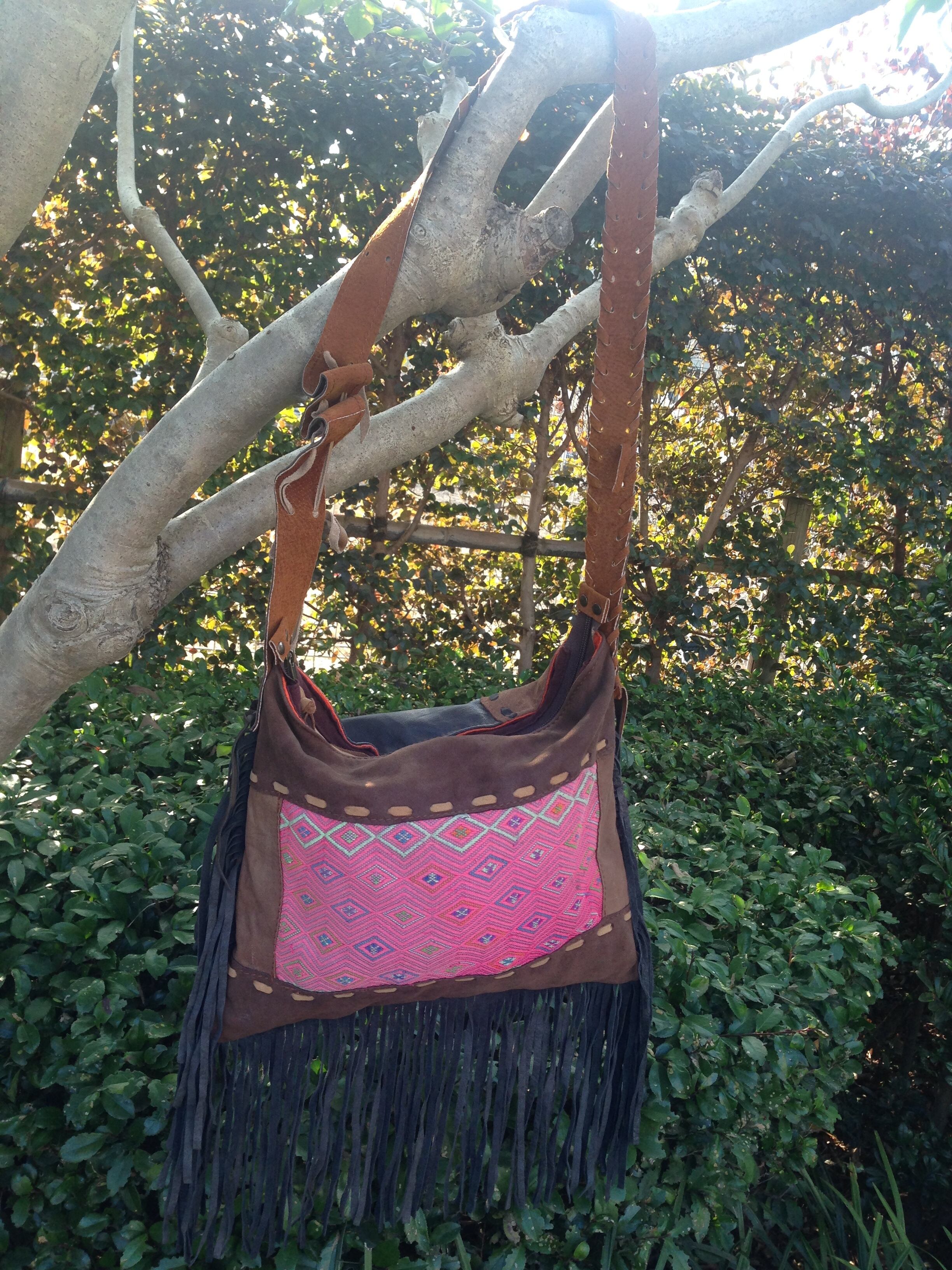本革 レザー 古布 カレン族 ハンドメイドバッグ