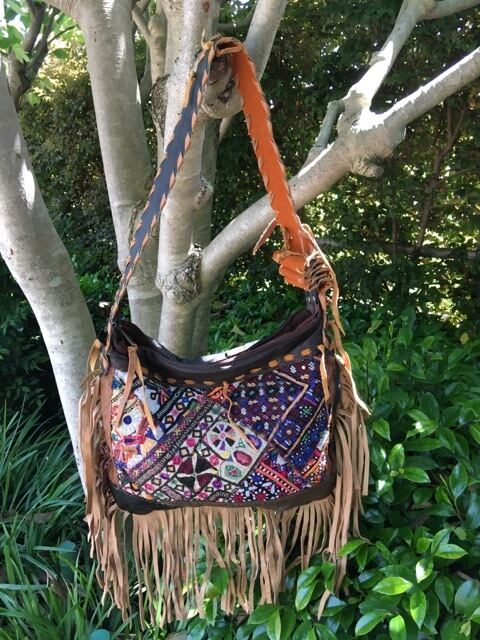 インド、パキスタンの古布と本革レザーを