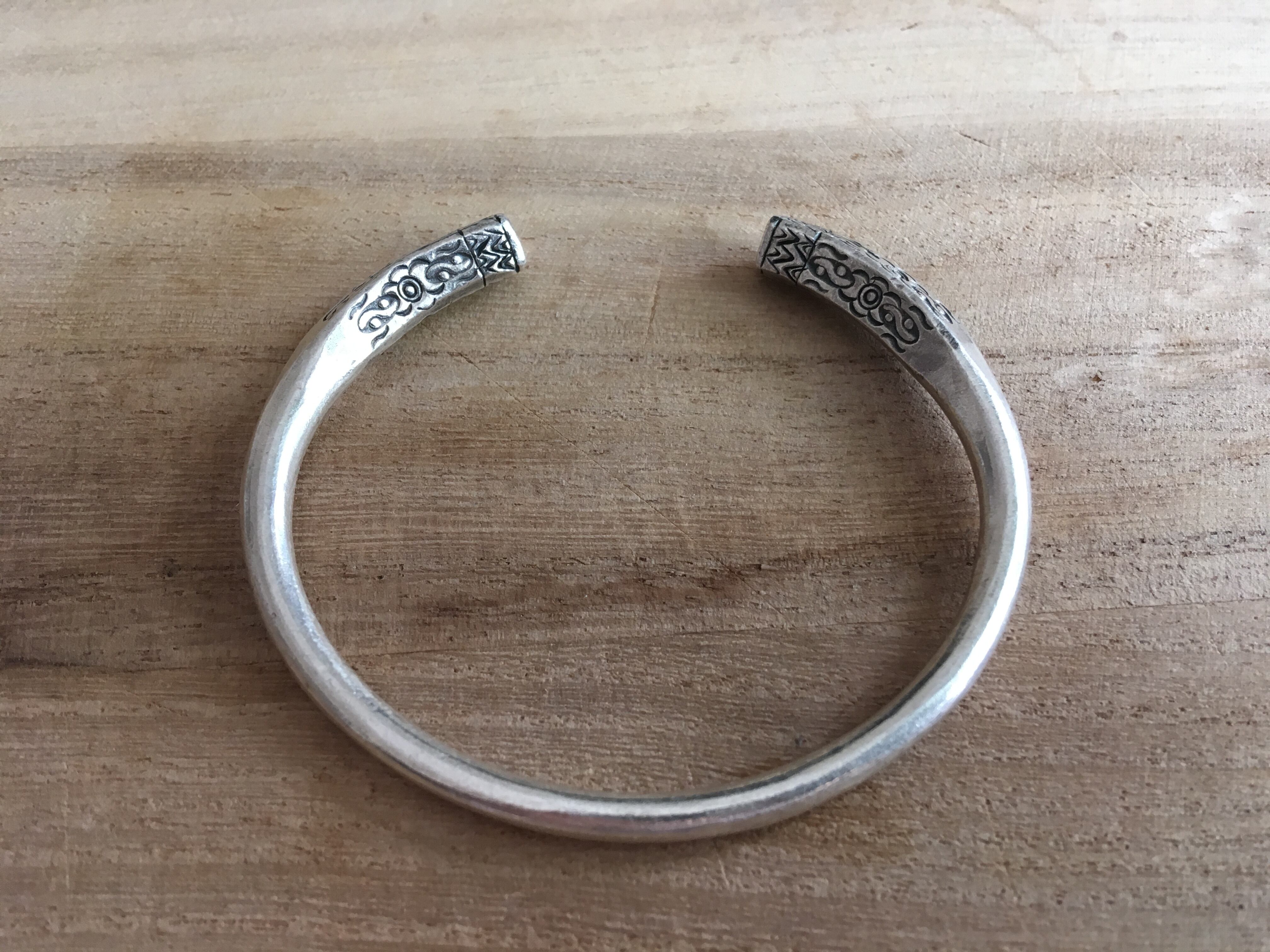カレン族シルバーは、一つ一つハンドメイドにて作られております。そのため、形が多少いびつな物、刻印の濃淡やズレ、微細な傷などが含まれることもございます。どうぞ、手づくり品ゆえの味わいとご理解の程、お願い致します。