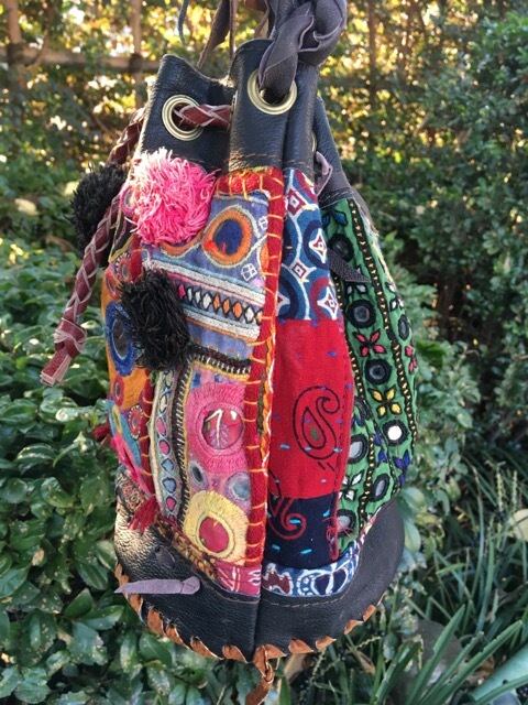 本革 レザー 古布 ハンドメイド エスニック バッグ
